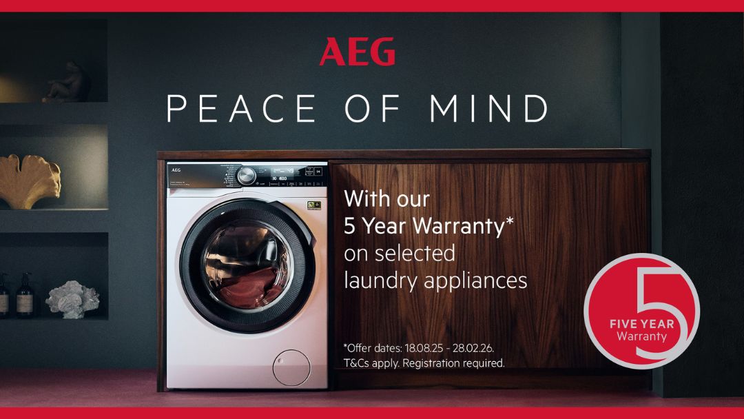 Get a FREE 5-year warranty with selected AEG appliances. T&Cs apply. Offer ends 28.02.2026.