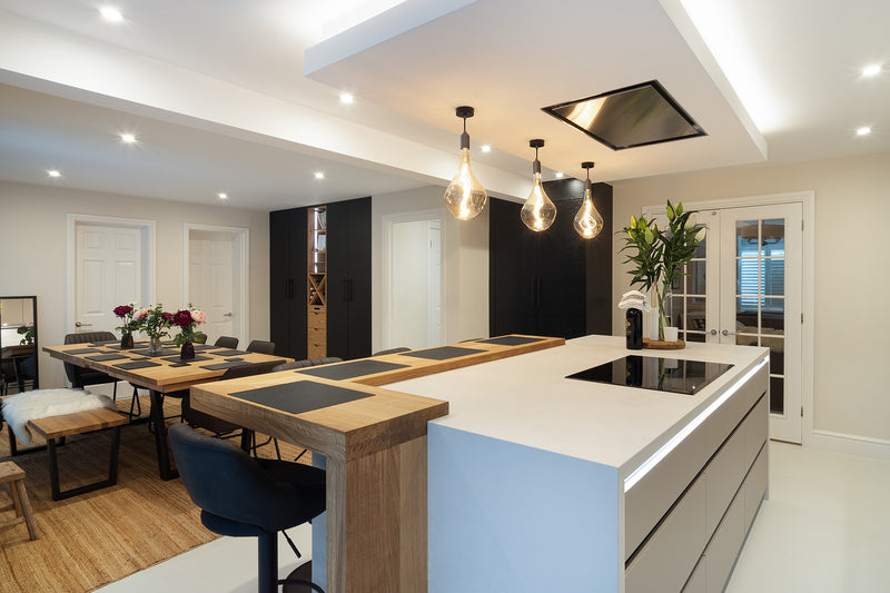 From concept to reality, this project redefines open-plan living, merging a kitchen with dining and leisure spaces, all in a sleek, contemporary design language.