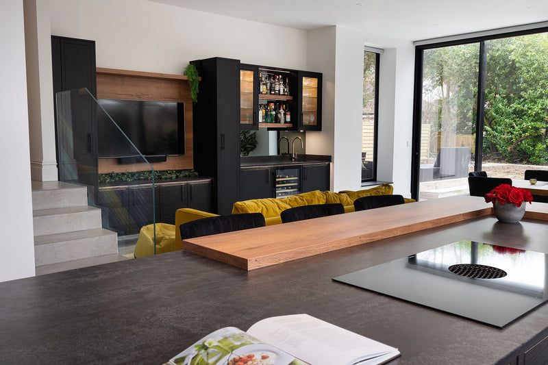 A stunning transformation into a modern, moody kitchen space, perfect for both daily enjoyment and frequent entertaining.