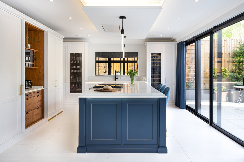 This impeccable Stoneham kitchen occupies an impressive and tastefully styled open plan space, making it ideally suited to entertaining friends and family.
