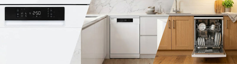 Many models offer quick wash options for when time is tight, along with eco programmes that help reduce water and energy use. Quiet operation keeps noise levels low, which is ideal for open-plan spaces and busy family kitchens. Simple controls and clear displays make these dishwashers straightforward to use, while neat freestanding designs fit comfortably into a standard 60 cm gap.