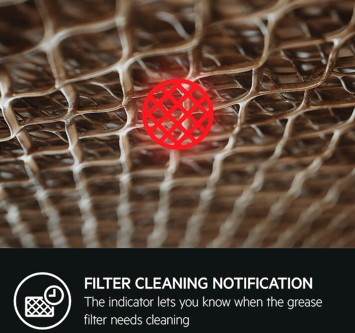 One of the standout features of the AEG GDG961AB is its washable grease filter. The appliance is fitted with aluminium grease filters that can be easily removed and washed, ensuring that the hood maintains peak performance without the need for frequent replacements. Additionally, the hood is equipped with a grease alert, which notifies you when the filters need cleaning, making maintenance hassle-free. The intensive speed function is another useful feature, which allows you to quickly clear the air when necessary, perfect for when you’re cooking particularly pungent dishes.
