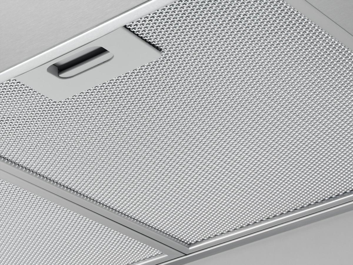 Equipped with a powerful internal motor, the AEG DTB3653M chimney hood offers three speed levels, catering to varying cooking demands. It effectively maintains a clean and fresh kitchen environment with its maximum extraction rate of 500 m³/h during normal use. Despite its powerful performance, the hood maintains a noise level range of 57-69 dB, ensuring your kitchen atmosphere remains comfortable and not overly noisy.