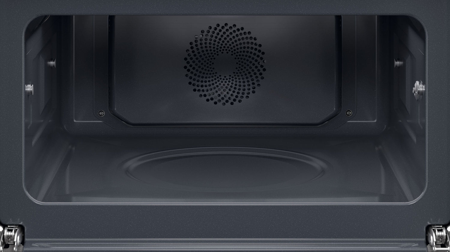The AEG OK6NK40K CombiQuick Compact Combination Microwave in Gloss Black is a versatile, built-in appliance with a 44L capacity. It features microwave and convection cooking, turbo grilling, and a keep warm function. Equipped with a fixed inverter delivering 1000W of power across five levels, it ensures efficient heating. The triple glazed drop-down door and grey enamel interior simplify cleaning. Control is user-friendly with rotary knobs and an LED digital display. The innovative EXPlore function enhances usability, while smartphone connectivity delivers precise control. Perfect for modern kitchens, it offers a broad temperature range of 30°C to 230°C.