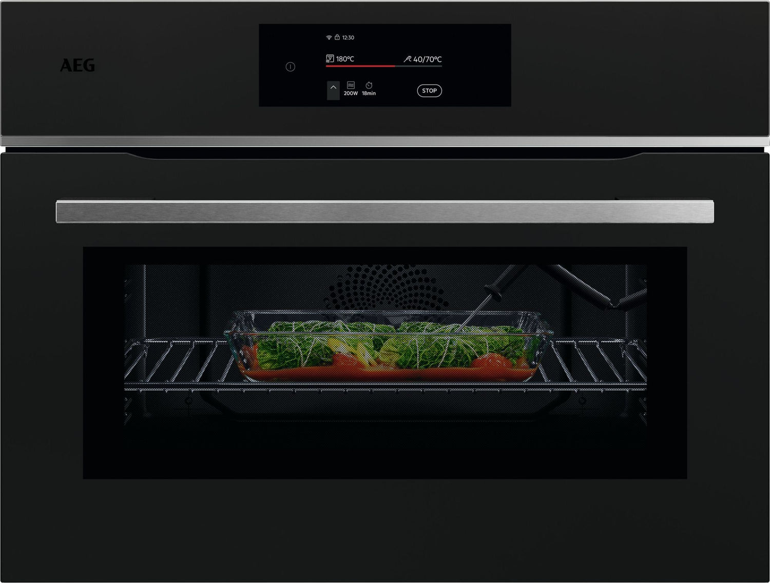 AEG Connected Compact Combination Oven - Matt Black With Steel Infinity Trim & Handle