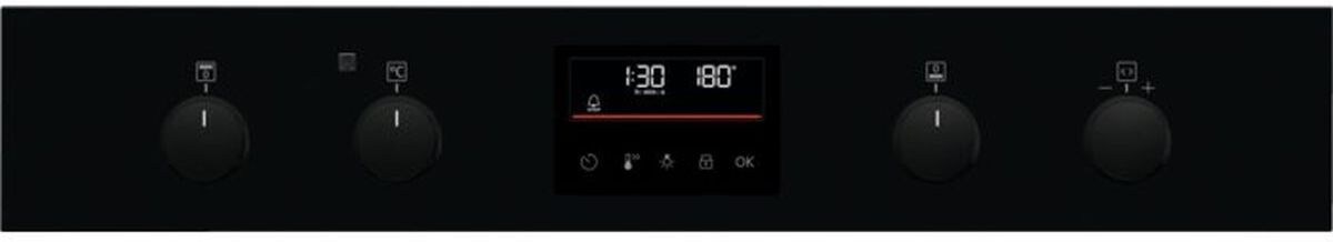 The oven's design is both functional and elegant. The black finish and IsoFront double-glazed doors add a touch of sophistication to your kitchen, while also enhancing safety by keeping the exterior cooler to the touch. The doors are removable for easy cleaning, further simplifying maintenance. The inclusion of minute minder and notification sounds helps you keep track of your cooking without hassle.