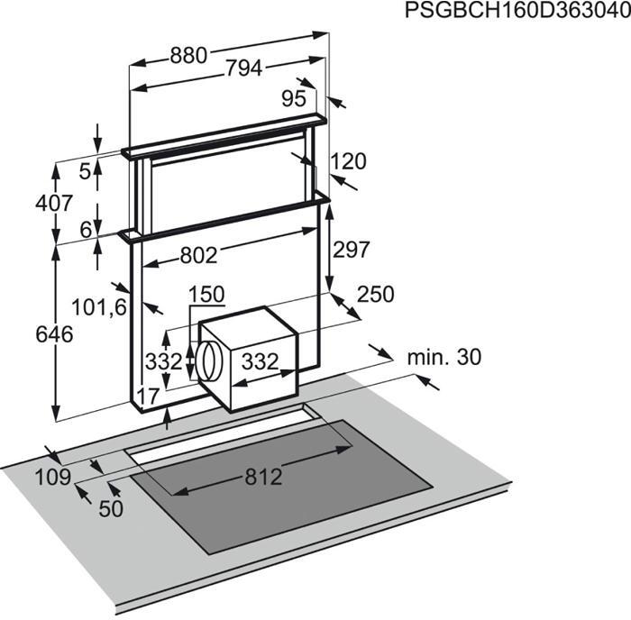 - Minimum Distance between Cooker Top And Extractor: 65 cm