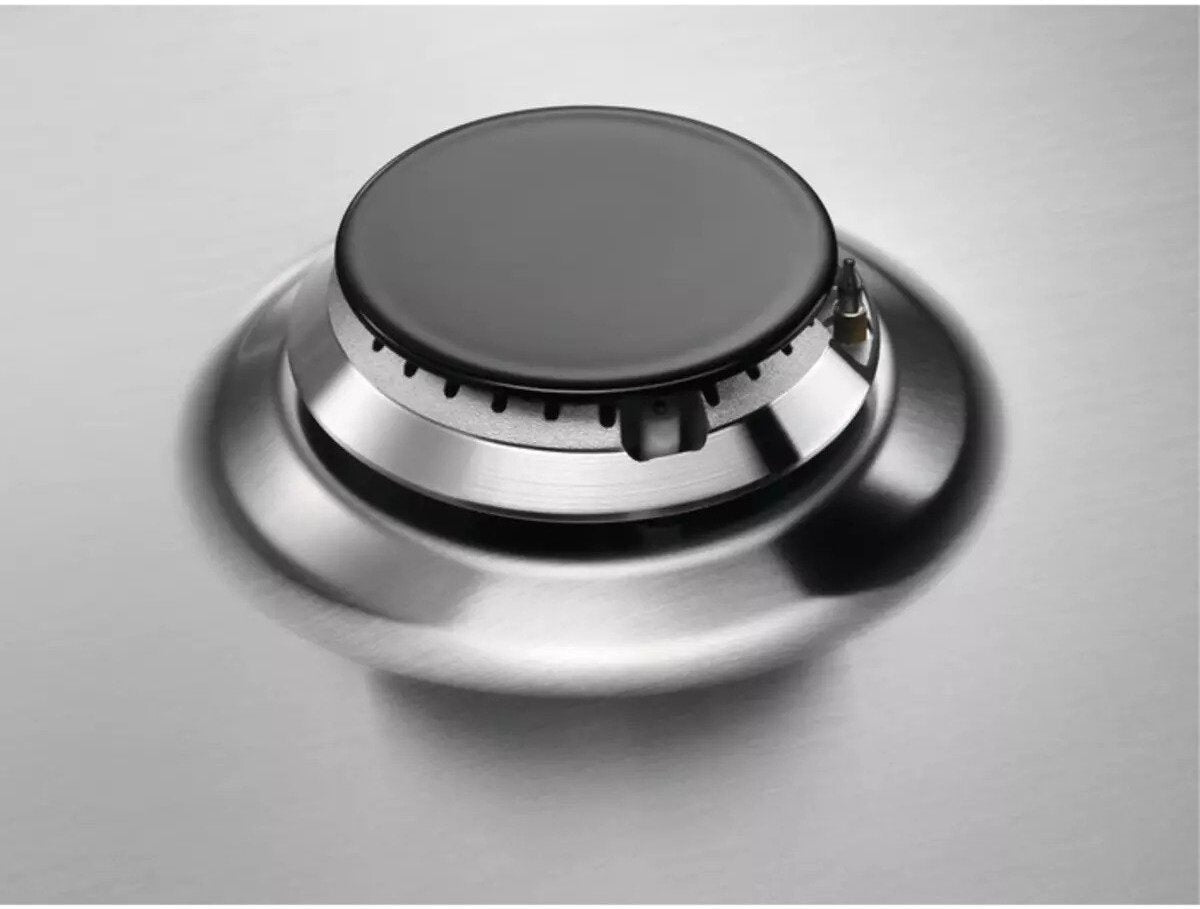 This AEG HGB95522YM Gas Hob from the 8000 series comes complete with an exquisite stainless steel finish, and the ultimate practicality to match. This hob features four high capacity individual burners, as well as a specialist wok burner, should you want a proper stir-fry or seared steak. Also included is, an integrated ignition for easy operation and an orange LED display to easily show your cooking settings. Even more, convenience comes with the design of the burners which allow the flame to deliver heat to the bottom of the pan efficiently shortening cooking times by 20%.