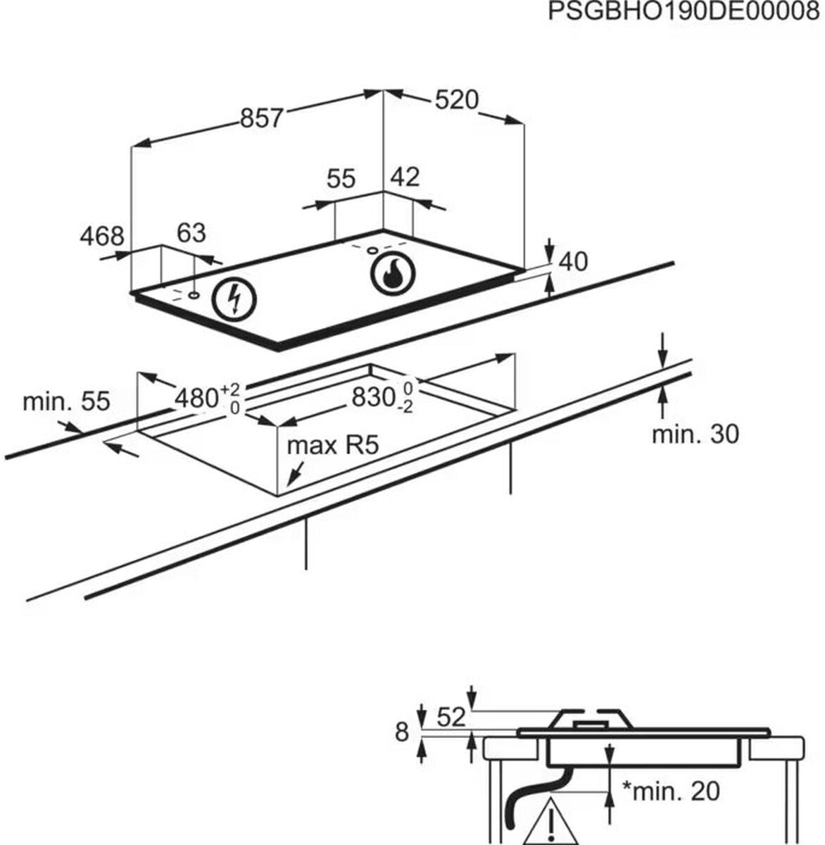 The hob’s dimensions are carefully considered to fit into various kitchen layouts. With a width of 85.7 cm, it provides ample space for multiple pots and pans, making it ideal for both everyday cooking and more elaborate meals. The flush fit design ensures it sits neatly within your countertop, although it does not offer a fully flush installation, maintaining a slight elevation for ease of cleaning and maintenance.