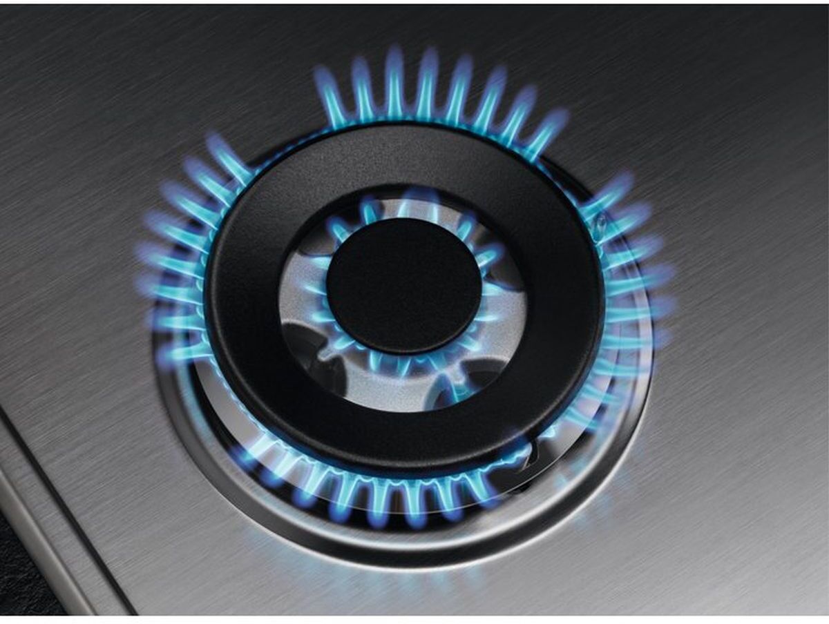 The design and functionality of the AEG HGX95320SM are further enhanced by its user-friendly controls. The rotary control knobs are positioned at the front centre, providing easy access and intuitive operation. These controls allow for precise adjustment of the flame intensity, ensuring you can achieve the perfect cooking conditions for any dish.