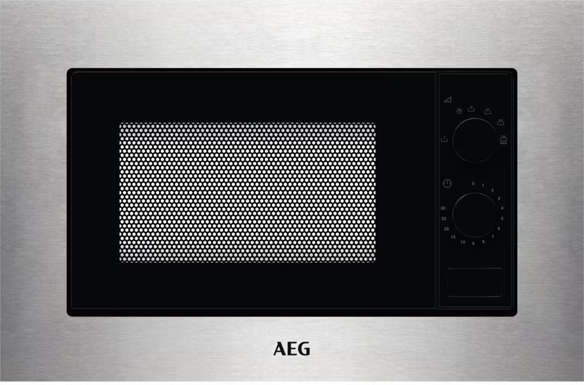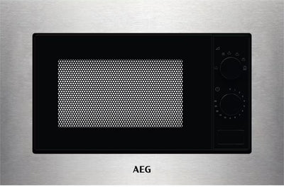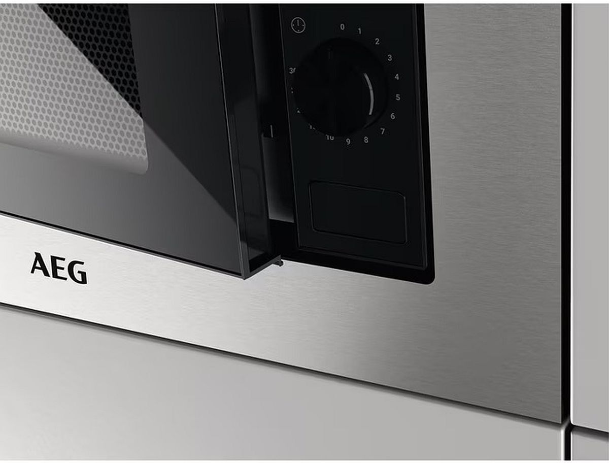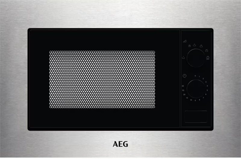 AEG 3000 Series Semi Built-in 700w Solo Microwave - Black Centre With Anti-Fingerprint Stainless Steel Frame