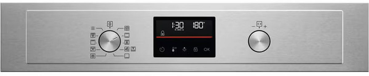 The design of the oven is both practical and stylish. The stainless steel finish with an anti-fingerprint coating keeps it looking pristine, even with frequent use. The LED digital display is clear and easy to read, and the integrated clock and timer functions help you keep track of cooking times with precision. The oven also features five shelf levels, providing flexibility in positioning your dishes for optimal cooking results. The grey enamel interior is not only durable but also easy to clean, further enhancing the oven’s practicality.