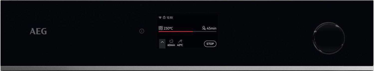 AEG Connected SteamCrisp Quarter Steam & Pyrolytic Single Oven - Gloss Black With Infinity Steel Strip