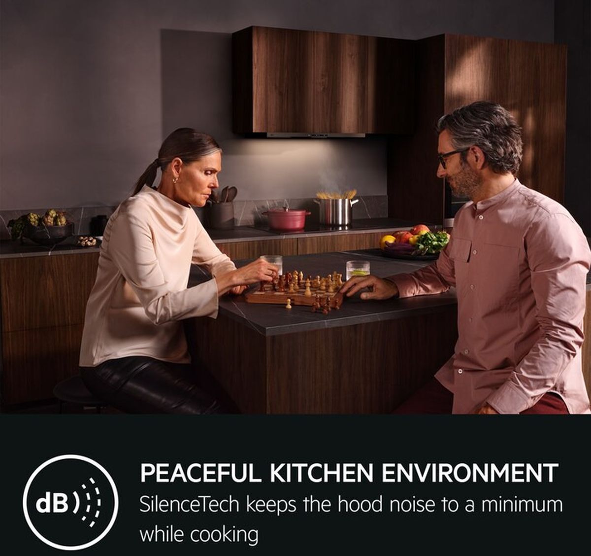 Noise can often be a concern with extraction hoods, but the GDP866PB addresses this with its SilenceTech Range, which ensures that it operates quietly even at its highest settings. The noise level ranges from a whisper-quiet 44 dB at its lowest setting to a maximum of 66 dB when the booster is engaged. This ensures a peaceful cooking environment, allowing conversation and activities to continue uninterrupted.