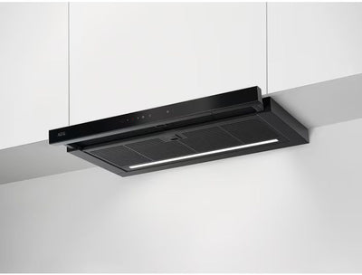 The AEG GDP866PB 8000 Series 60cm Telescopic Hood in sleek black powder finish offers powerful extraction with three speeds and a booster power level. With a maximum extraction rate of 650 m³/h and a noise level range of 44-66 dB, it ensures efficient and quiet operation. Energy-efficient (rated A) and equipped with LED lighting, the GDP866PB provides perfect illumination. Key features include the Hob2Hood connection, grease alert, and washable grease filter. This hood is suitable for both air extraction and recirculation, making it a versatile addition to any kitchen.