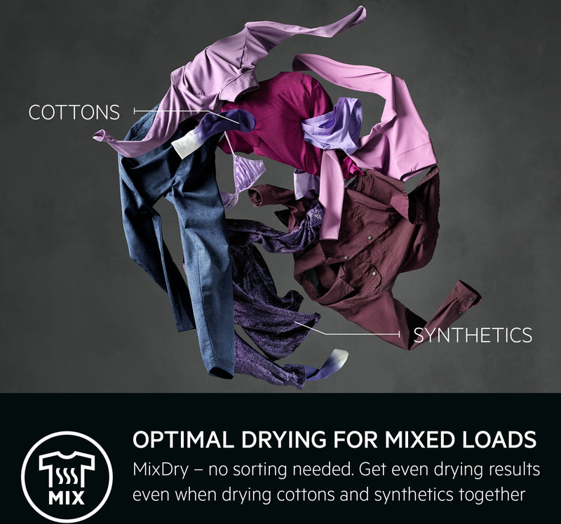 - MixDry Function Allows Drying Of Mixed Fabrics Without Sorting