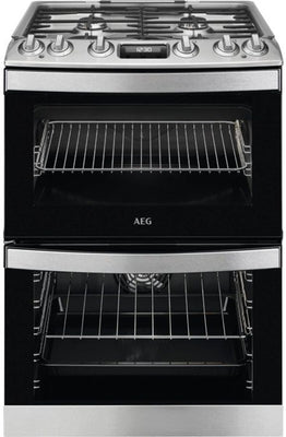 AEG 60cm Wide Dual Fuel Slot-in Double Oven - Stainless Steel