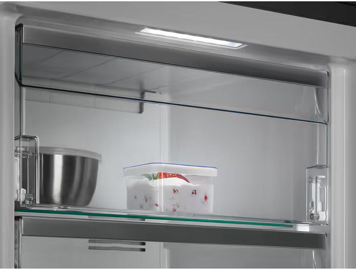 Organisation is made simple with the OAG7M281EW's thoughtful layout. Featuring five drawers, two shelves, and two door bins, you'll find plenty of storage options to accommodate items of various shapes and sizes. The glass shelves provide durability and easy cleaning, while the LED interior light illuminates the freezer's contents, making it easy to locate items even in low-light conditions.