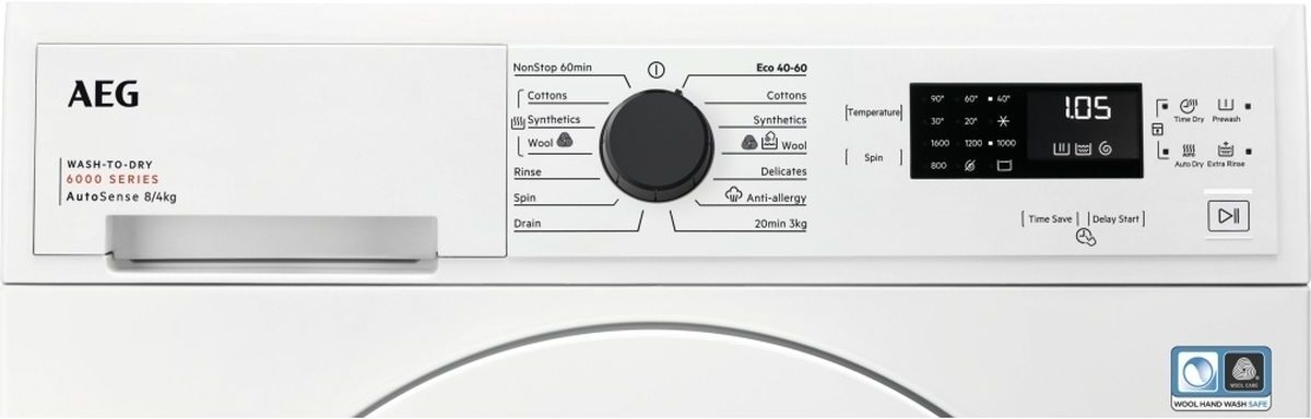 The LWX60846B prioritises convenience with thoughtful additions like a delay start function (2-20 hours) for flexible scheduling and automatic power-off to conserve energy. With AEG’s trusted quality and advanced features, this washer dryer simplifies laundry day without compromising on results.