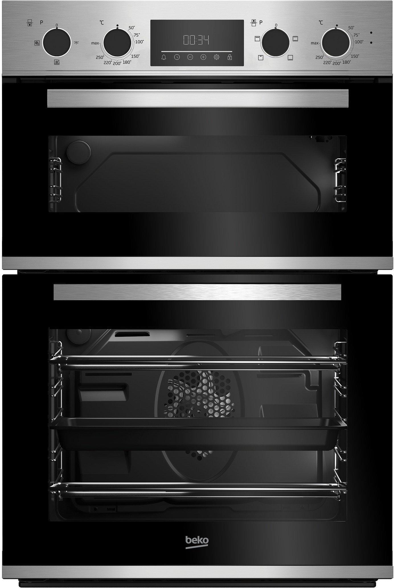 The design of the Beko CDFY22309X is both functional and aesthetically pleasing. It includes a sleek LED display and touch controls, making it simple to operate and adjust settings. The interior light in the main oven provides visibility, allowing you to monitor your cooking without opening the door. The oven doors are double-glazed for improved heat retention and are fitted with removable inner glass for easy cleaning.