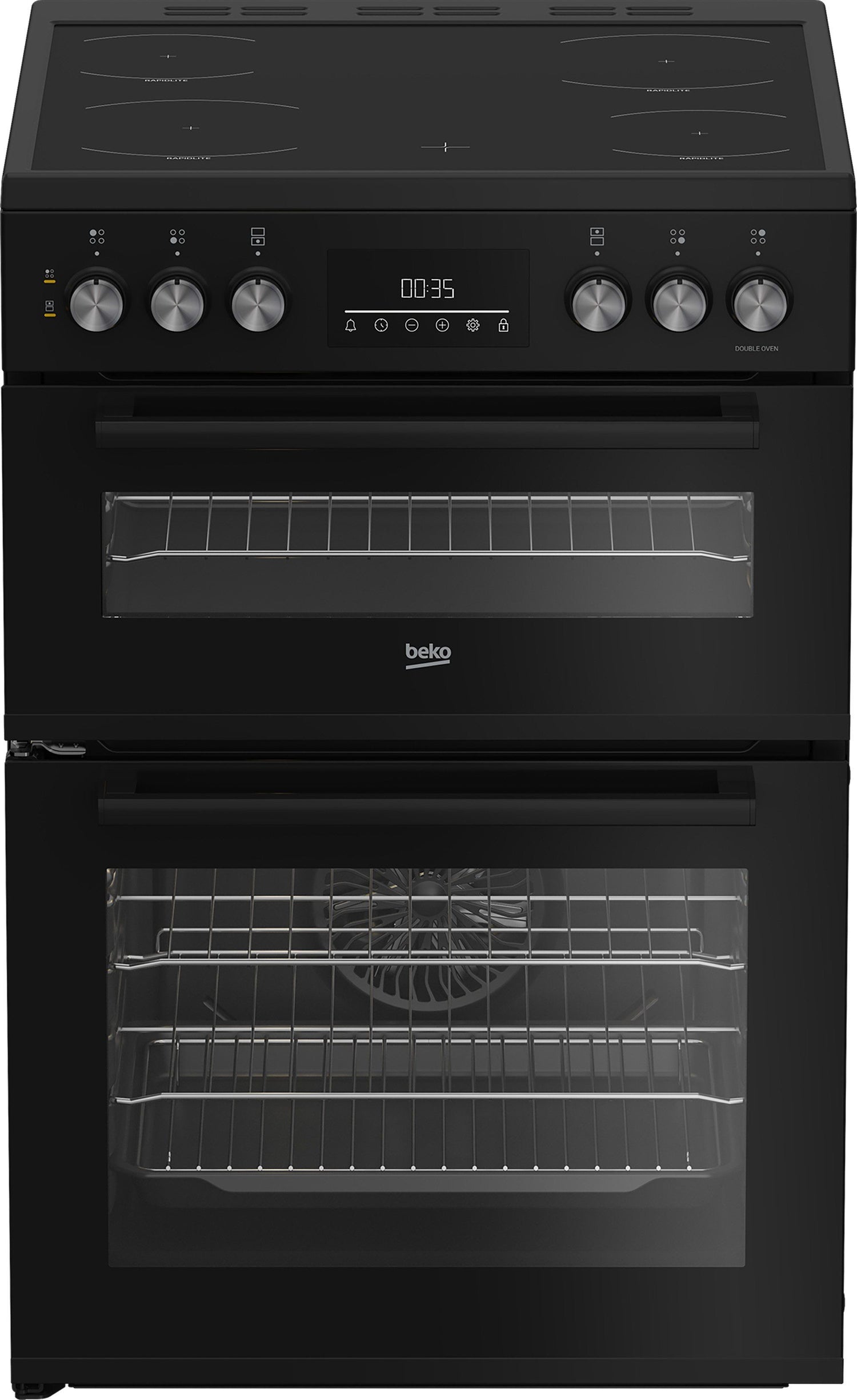 Beko 60cm Double Oven Electric Cooker with Vitroceramic Hob - Black