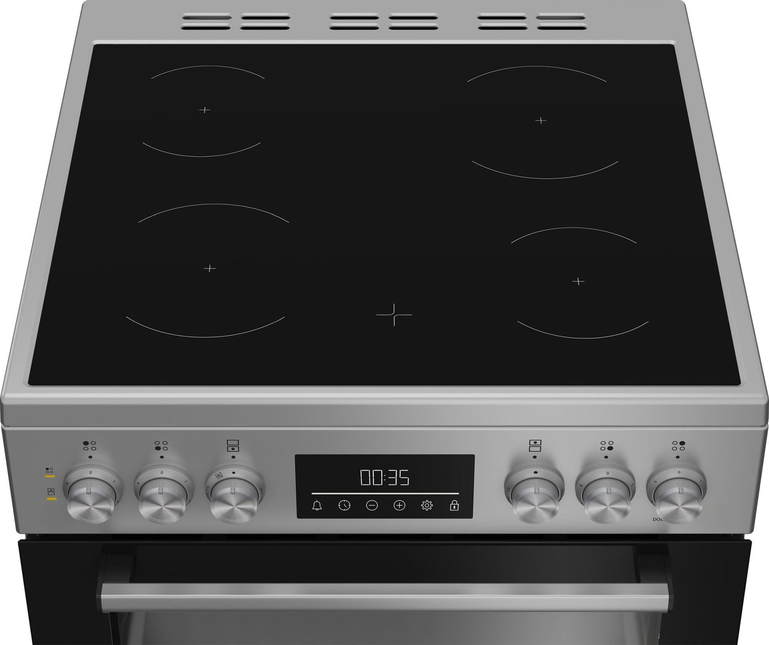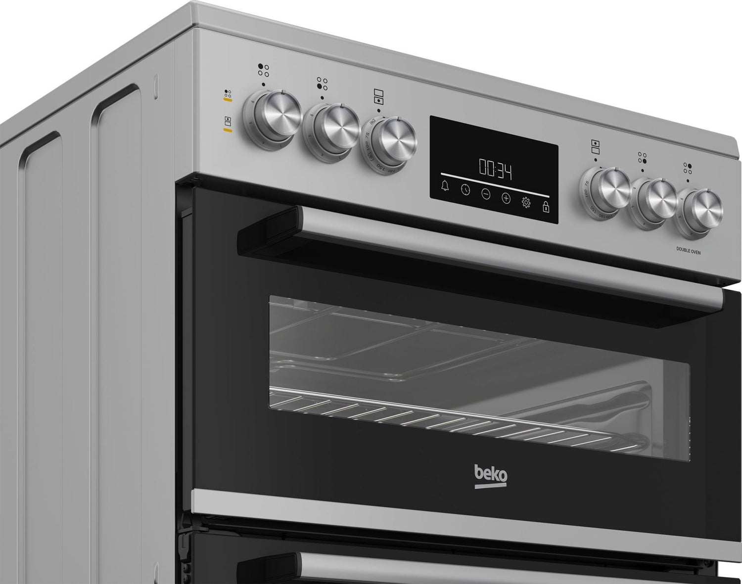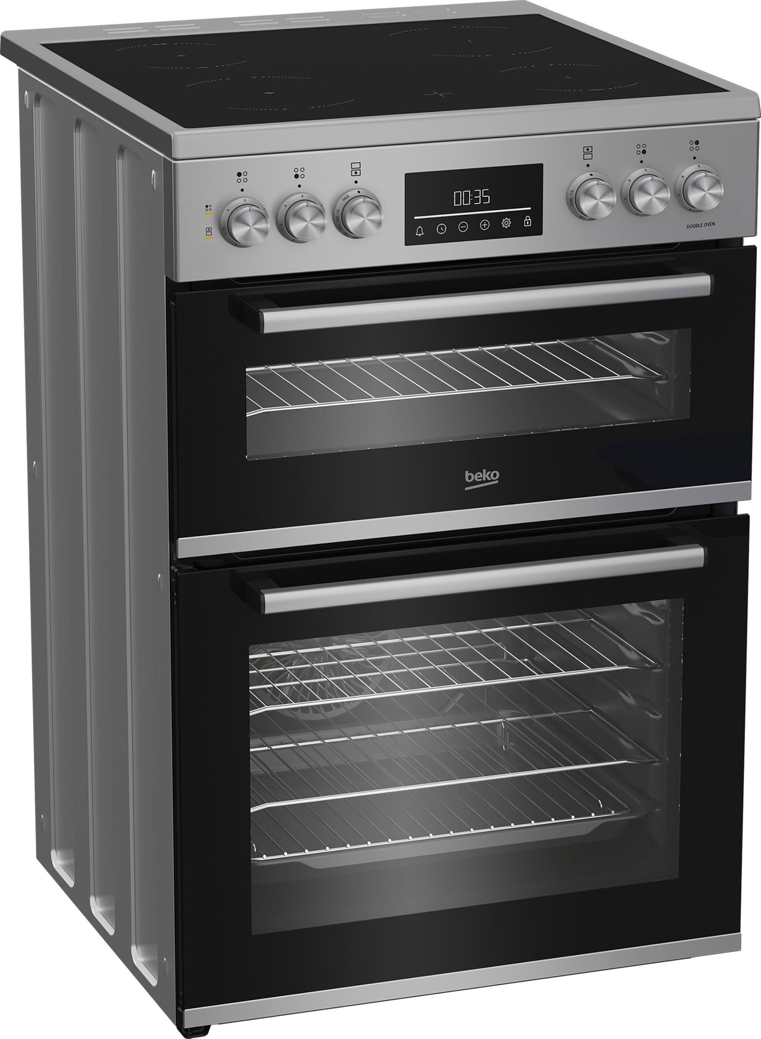 Beko 60cm Double Oven Electric Cooker with Vitroceramic Hob - Silver
