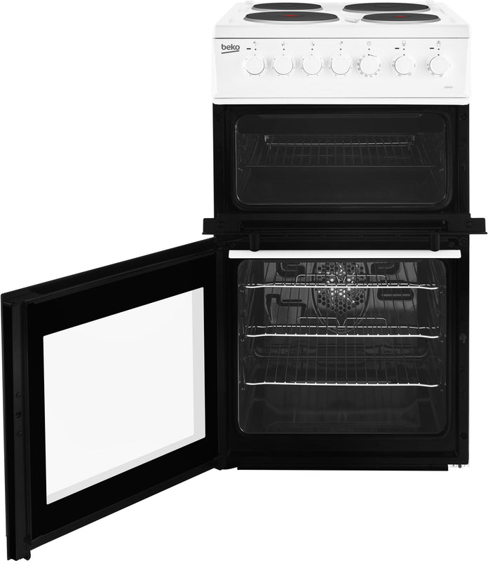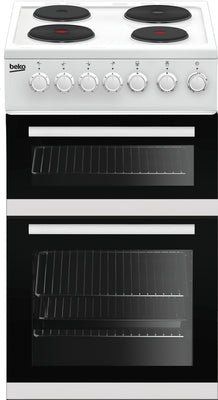 The Beko EDP503W, a 50cm wide electric cooker, stands out with its incredible value and energy efficiency. With a double oven featuring a top capacity of 31 litres and a main capacity of 58 litres, it's perfect for diverse cooking needs. The full-width grill, combined with a fan oven, offers versatile cooking options. Its four electric solid plate hob zones with adjustable settings ensure precise cooking control. Notably, the cooker's easy-to-clean enamel and removable door glass simplify maintenance. Certified with an A energy rating and CE approved, it's a reliable, efficient choice for any kitchen.