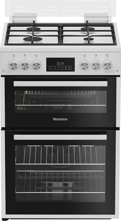 Beko 60cm Twin Cavity Gas Cooker with Enamel Hob - White