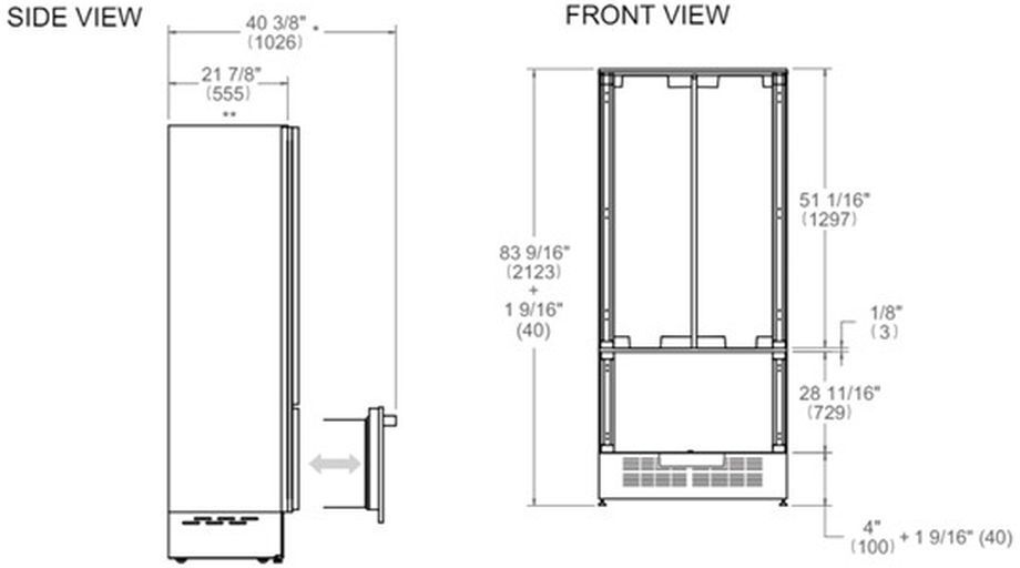 Bertazzoni Professional Series 90cm Wide Built in French Door Fridge Freezer - Panel Ready
