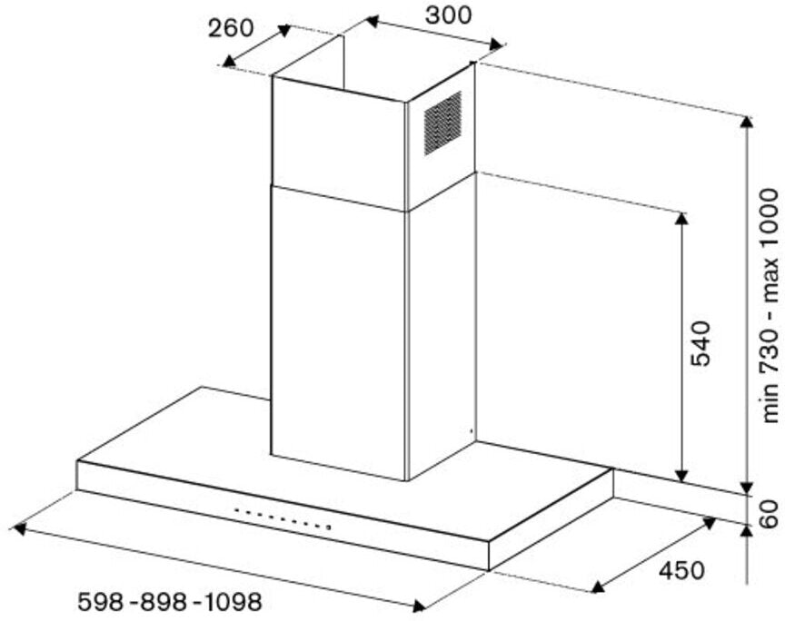 Designed for versatility, this chimney hood is suitable for both air extraction and recirculation modes. The adjustable telescopic height, ranging from 730 to 1060 mm, ensures a perfect fit above your cooking area. The hood's aluminium grease filters effectively capture airborne particles, while the intensive auto-off feature enhances energy efficiency. With an energy rating of B and an annual consumption of 73 Kwh/year, it combines power with sustainability.