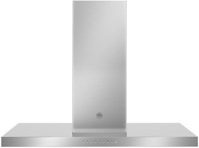 This Bertazzoni island hood has three speeds and a booster power level. The four LED lights will help light up the cooking surface below, so you can see what you need to do. Controlled by electronic buttons, this hood features a timer, stainless steel filters and a 24hr function.