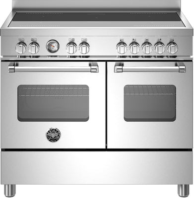 This stainless steel Bertazzoni range cooker has two oven cavities, 5 cooking zones and a storage compartment. The hob has pot detection, a booster feature and residual heat indicators for each zone. The main oven cavity has 11 functions including a defrosting function and a bottom bake function. The handy storage compartment will hold some of your cooking trays.