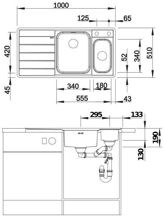 - The dimensions are for the right-hand sink configuration
