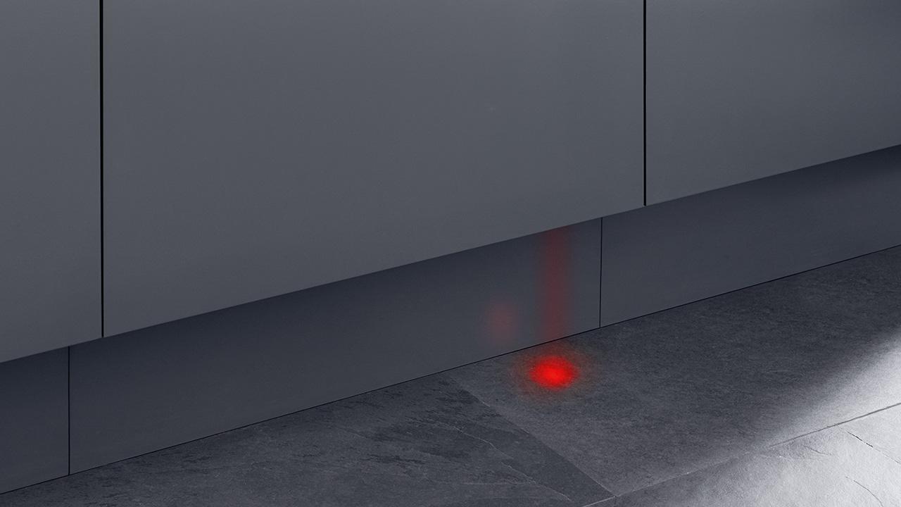 Illuminating the floor below the dishwasher while it's running, the red LED spot will disappear when your dishes are ready to be unloaded.