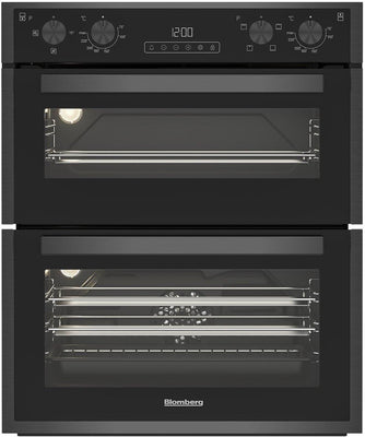 Discover the Blomberg ROTN9202DX Double Oven, offering superior cooking with its 75L main and 38L top ovens, both with easy-clean enamel. Energy-efficient (A-rated) and fan-assisted, it ensures even cooking. Features include pop-out dials, touch controls, LED display, and a modern dark steel finish. Safety is enhanced with a control panel lock. Versatile with full grill and fan heating options, it’s perfect for various culinary needs.