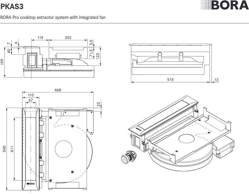 The Bora Professional 3.0 Cooktop Extractor System excels in kitchen innovation, offering 8 speeds and a booster for powerful extraction, reaching up to 670 m³/h. It operates quietly, with a maximum noise level of 58 dB using the booster. Designed for both air extraction and recirculation, it's compatible with Bora Professional cooktops. Notable features include automatic functions, a grease drip pan, and intuitive controls. Its stainless steel construction ensures durability and easy cleaning. With dimensions of 468 x 540 x 199 mm, it's a compact yet efficient addition to modern kitchens. The Bora Professional 3.0 Cooktop Extractor System represents a seamless blend of functionality and style.