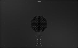 This sleek black ceramic four-zone induction hob helpfully integrates a compact extractor fan, which works quietly yet effectively to refresh the air while you cook. The responsive, powerful induction zones are large enough for pans up to 24cm in diameter and can be controlled easily with the intuitive slider control. An integrated grease drip pan catches any spills during cooking, while the extractor fan is easy to maintain, with dishwasher-safe parts.