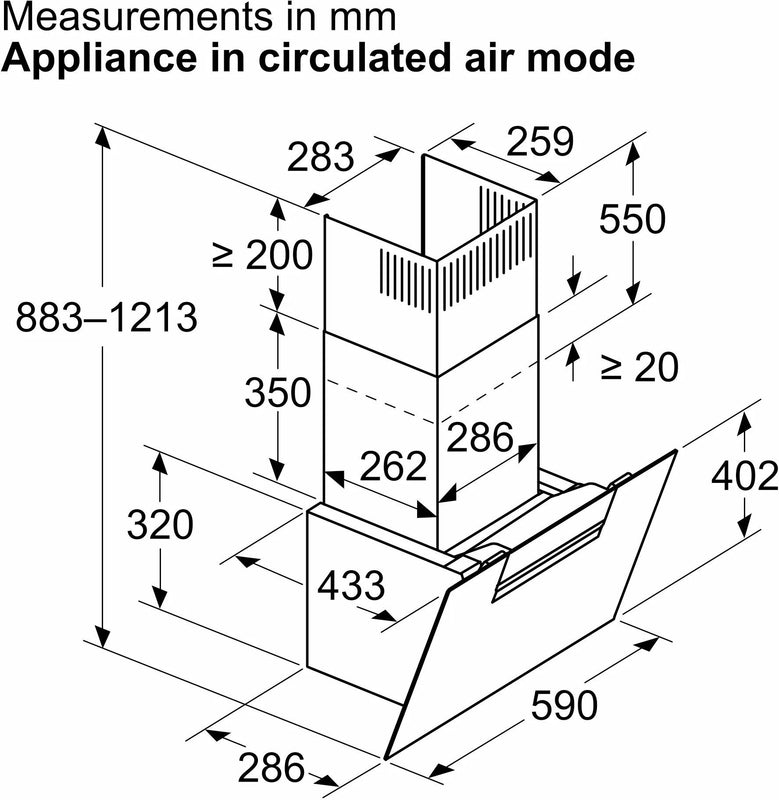Noise levels are kept in check, with a comfortable 56 dB during standard operations and a maximum of 68 dB on the booster setting, ensuring your kitchen atmosphere remains as serene as possible. Designed for both air extraction and recirculation modes, this hood adapts to your specific kitchen ventilation requirements. Moreover, its Internet-connected features offer convenience at your fingertips, allowing you to control and monitor your hood remotely through the Home Connect app and even voice control via popular voice assistants.