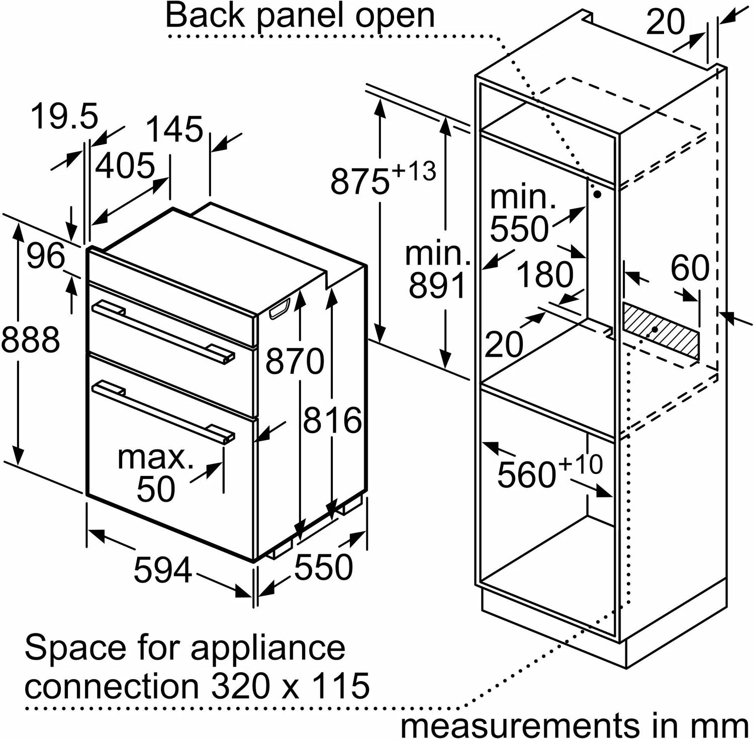 - Installation Requirements (hwd): 875 - 888 x 560 - 568 x 550 mm