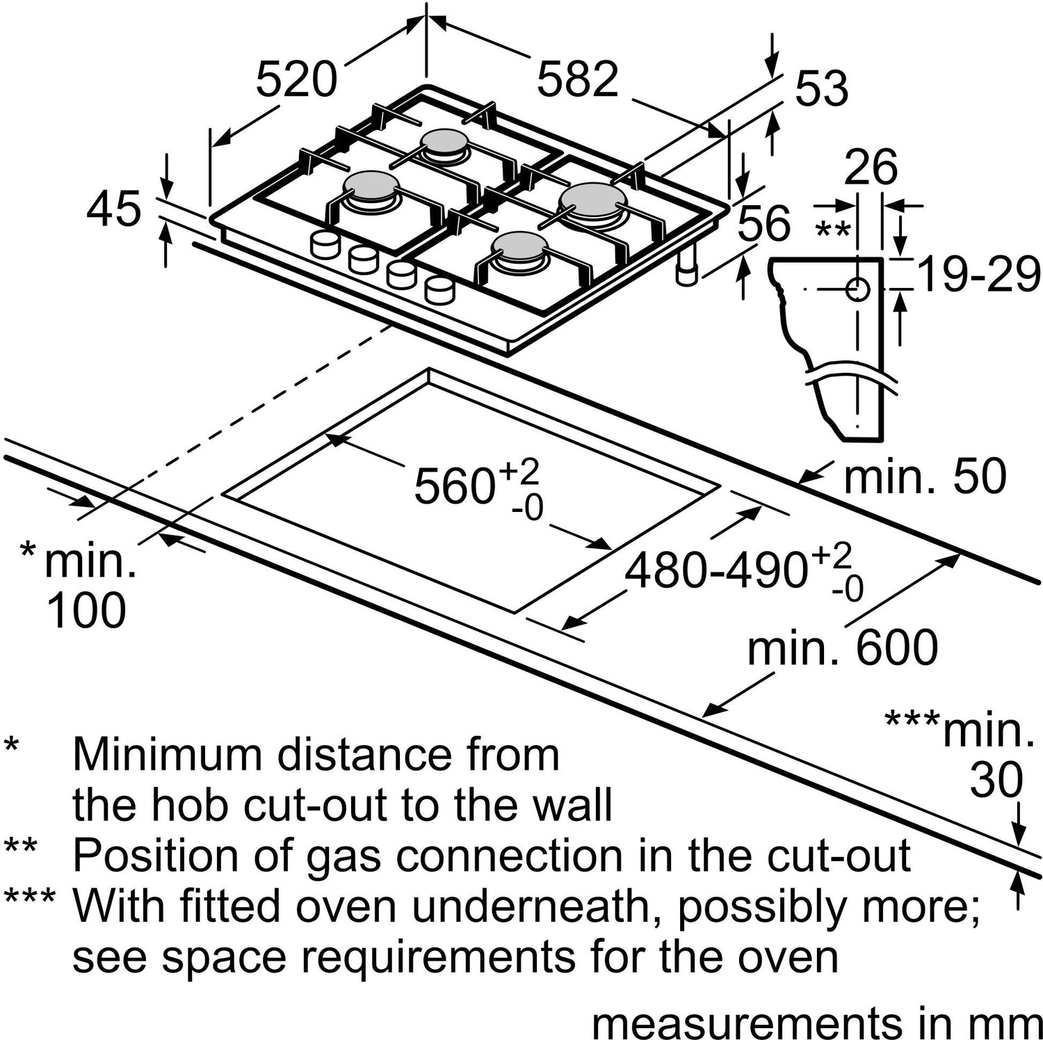 - Installation Requirements (hwd): 45 x 560 - 562 x 480 - 492 mm