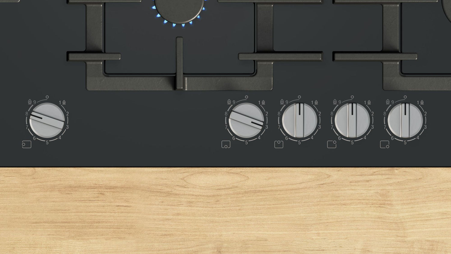 Practicality is at the heart of the PPM9A6I40's design. Cast iron pan supports with rubber feet provide excellent stability for pots and pans while protecting the glass surface beneath. The supports are semi-continuous, allowing you to slide cookware easily across the hob, and are detachable for straightforward cleaning. They, along with the control dials, are dishwasher-suitable, helping to reduce cleaning time and effort.
