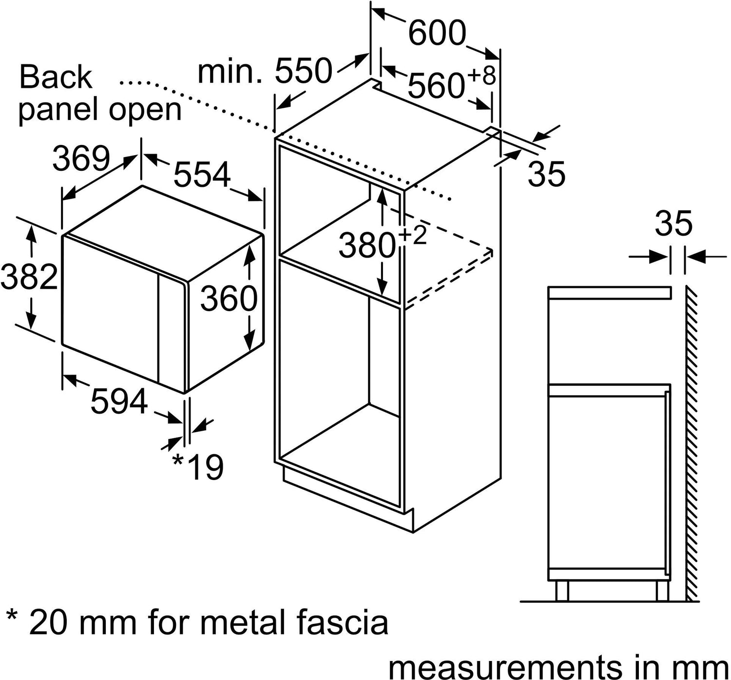 - Installation Requirements (hwd): 380-382 x 560-568 x 550 mm