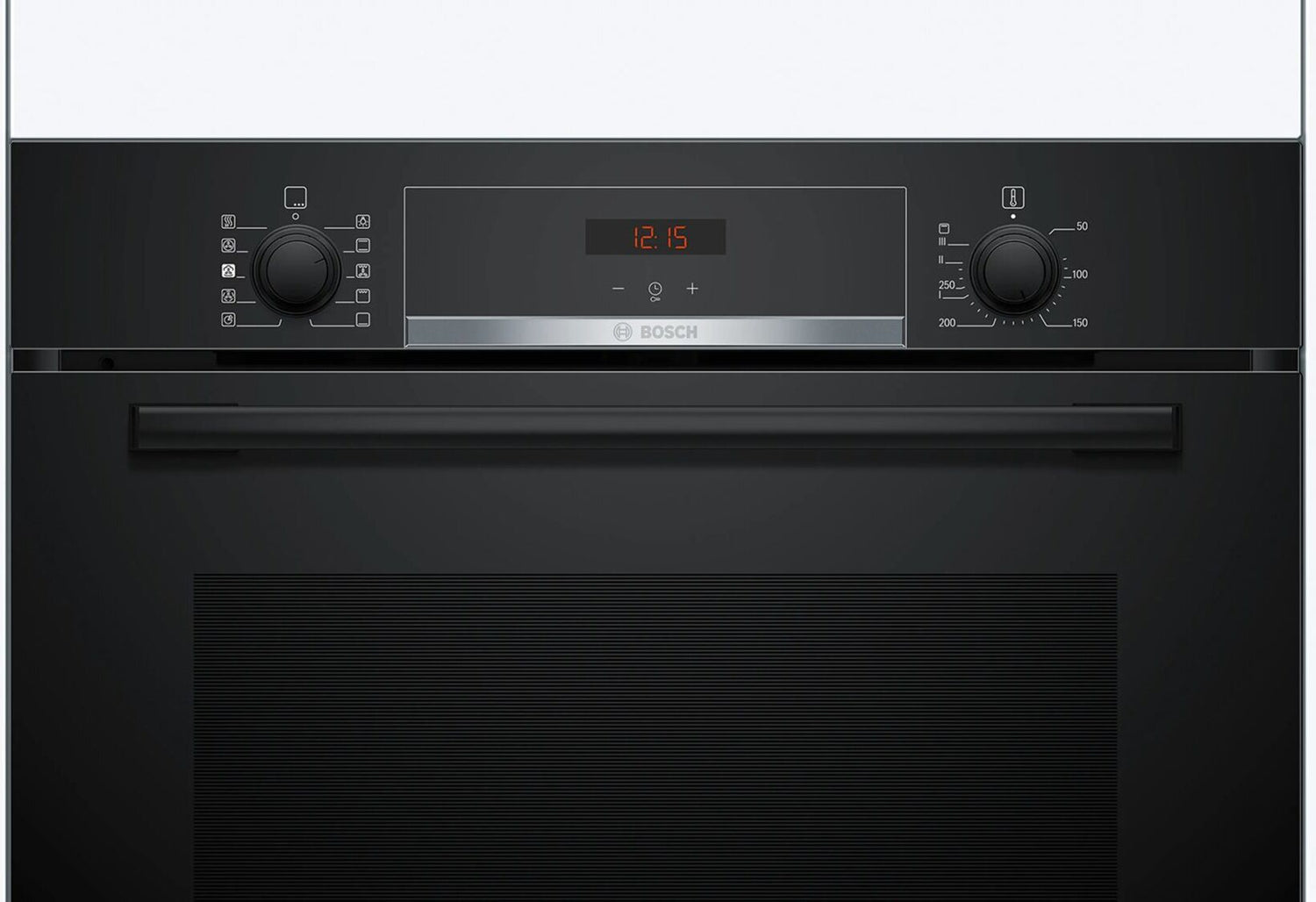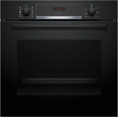 The Bosch HQA534BB3B Series 4 built-in single oven combines style and practicality with an elegant black finish and advanced features. With an A+ energy rating and 71-litre capacity, it’s perfect for family cooking. Enjoy precision cooking with 3D HotAir, a pizza function, and steam-assisted cooking. The hydrolytic cleaning system and self-cleaning back wall make maintenance effortless. Its LED display, rotary dials, and touch controls ensure intuitive use, while the childproof lock offers peace of mind. Additional highlights include a rapid heat-up function, bread proving, and five shelf levels for versatile cooking. Includes two combination grids and a universal pan.