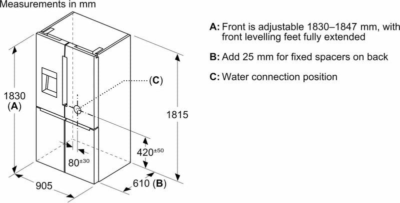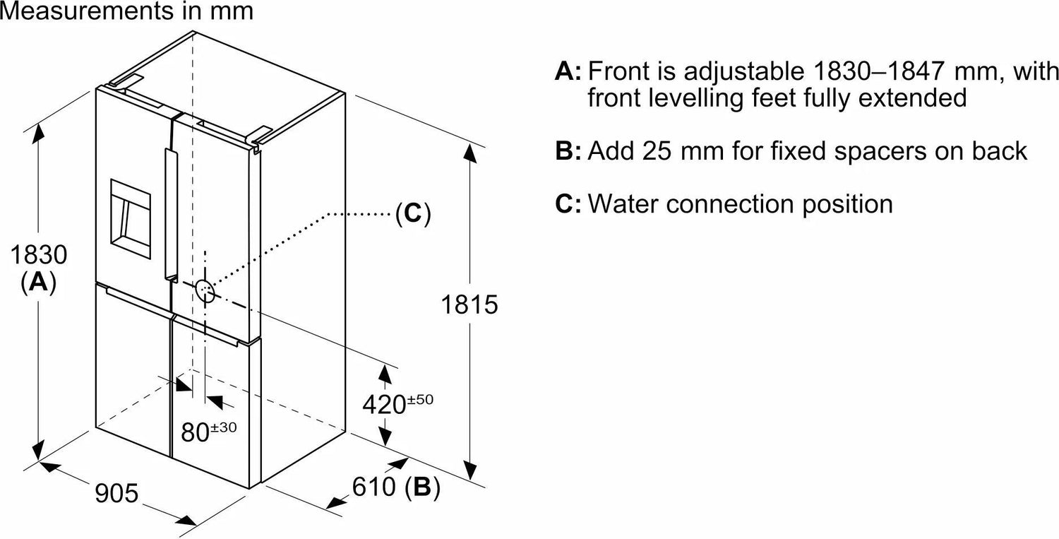- Dimensions (HxWxD): 1830 x 905 x 731 mm