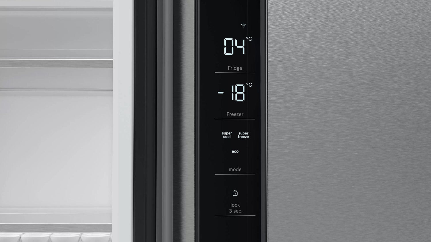 Technology and innovation are at the heart of the Bosch KFN96APEAG. The fridge freezer is equipped with Home Connectivity, allowing you to manage and monitor it through the Home Connect app. This feature includes a Storage Guide to help optimise food placement based on ideal storage temperatures. The electronic control with an LED display adds to the ease of use, while the Sabbath mode and door open warning signal are thoughtful additions catering to diverse user needs.