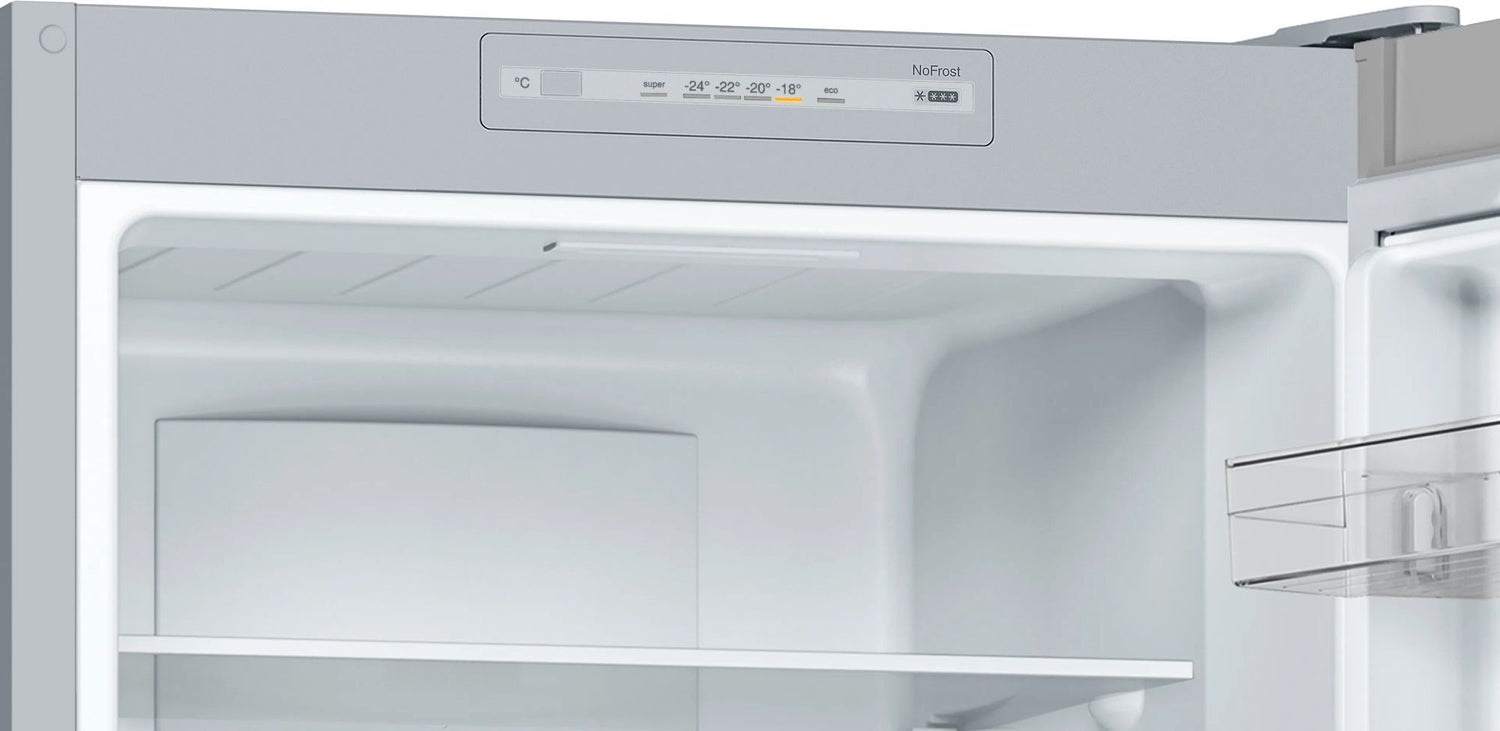 One of the standout features of this fridge freezer is its frost-free technology. Thanks to Bosch’s NoFrost system, both the fridge and freezer automatically defrost, meaning you never have to worry about manually defrosting again. The MultiAirflow system improves air circulation, maintaining a consistent temperature throughout the fridge and freezer compartments. This not only preserves the freshness of your food for longer but also reduces the risk of uneven cooling, which can lead to spoilage.