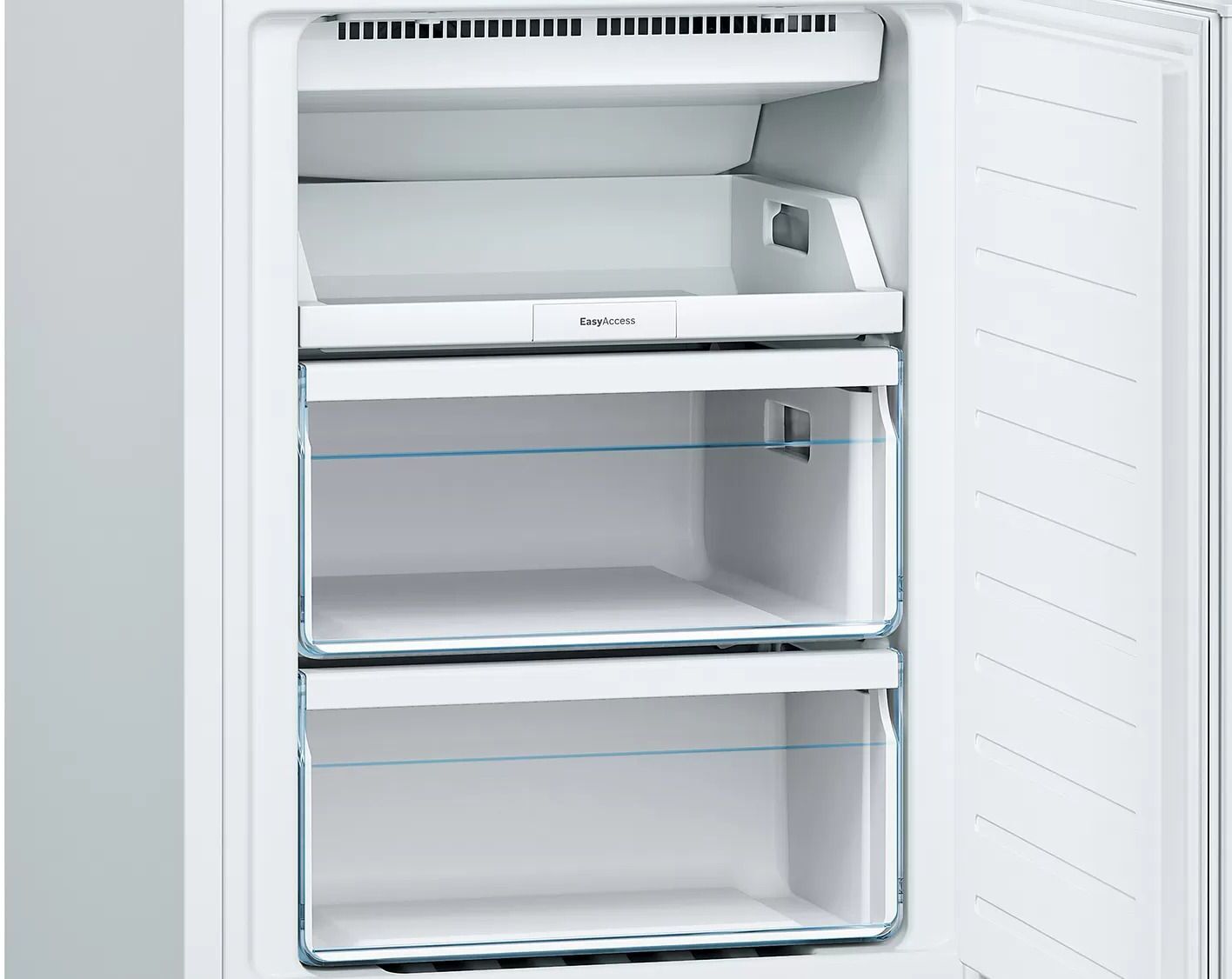 In the freezer compartment, you'll find three drawers, including an EasyAccess drawer for greater convenience. The freezer is rated 4 stars, indicating its high performance and efficiency. It has a freezing capacity of 11 kg in 24 hours and can keep your food safe for up to 19 hours in the event of a power failure.