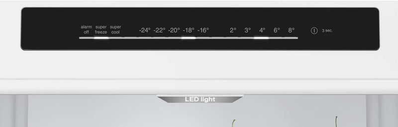 Starting with its spacious interior, the fridge offers a generous net volume of 260 litres, while the freezer provides 103 litres, making it ideal for families of all sizes. The fridge is thoughtfully arranged with four glass shelves, two drawers, and four door bins, offering ample space to organise your groceries efficiently. The freezer features three drawers, allowing for easy storage and retrieval of frozen items. Both compartments benefit from Bosch’s innovative frost-free technology, eliminating the need for manual defrosting and ensuring your food remains fresh for longer.