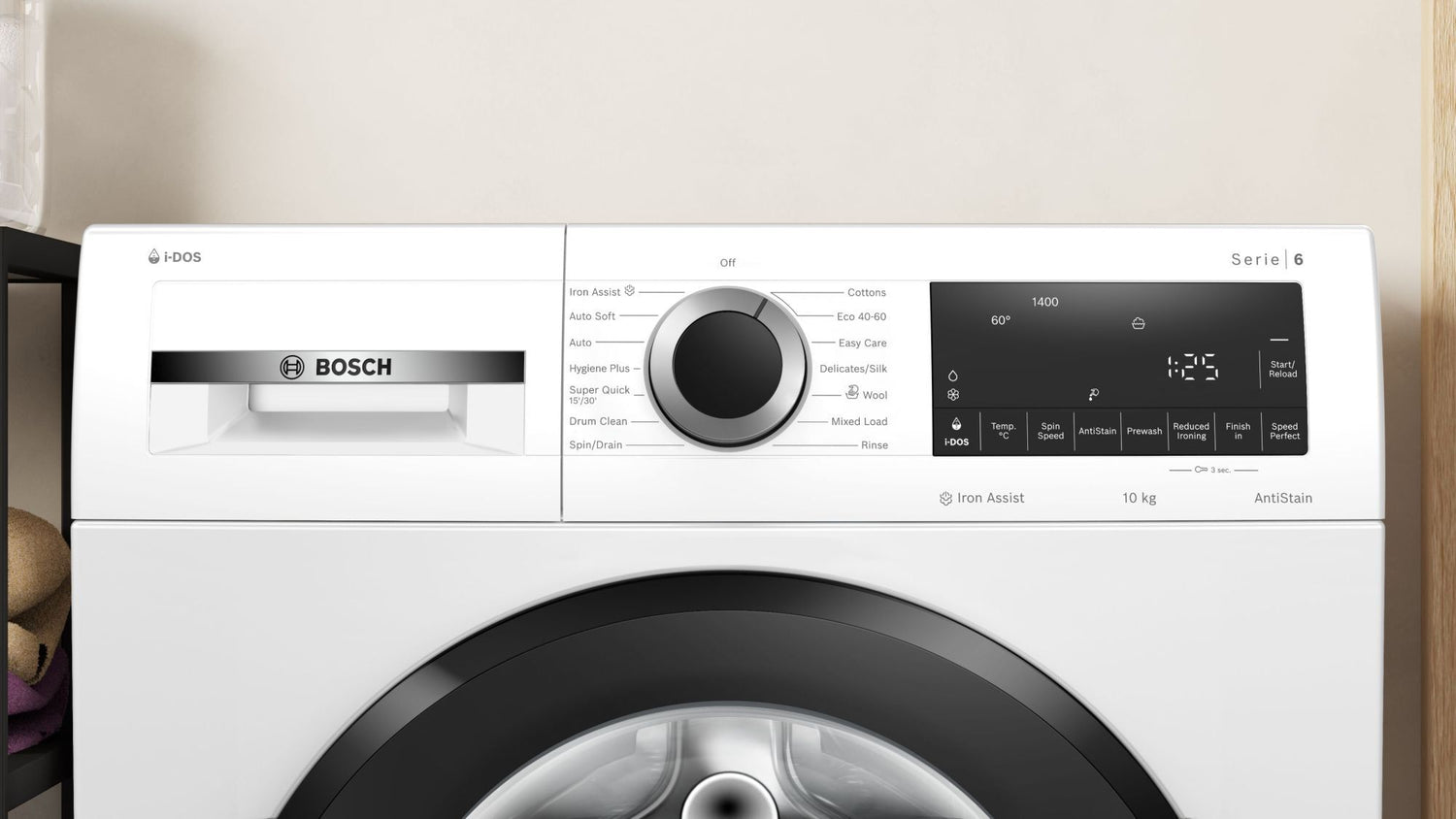 The Bosch WGG254F1GB washing machine combines efficiency with convenience in a sleek white design. With a generous 10kg drum, 1400rpm spin speed and energy rating A, it delivers powerful cleaning while keeping bills low. The i-DOS 2.0 system intelligently doses detergent, while EcoSilence Drive ensures quieter washes. Choose from 14 tailored programmes, including Hygiene Plus, Iron Assist, and Super Quick. Featuring a child lock, anti-flood system, and intuitive LED display, it’s built for peace of mind and ease of use. The Reload function and anti-crease EasyIron option add extra flexibility to this freestanding Bosch Series 6 essential.