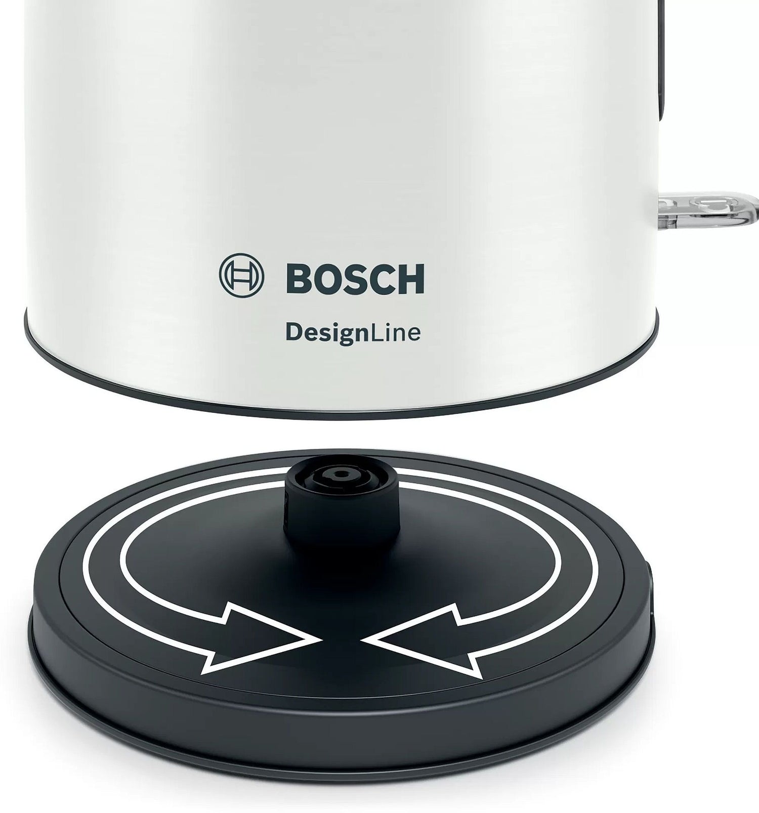 Safety is a paramount concern with the Bosch TWK5P471GB, which is equipped with dry boil protection and an automatic shut-off when the water has boiled, when the kettle is empty, or when lifted from the base, providing peace of mind for the user. Additionally, the non-slip feet on the base ensure stability during use.